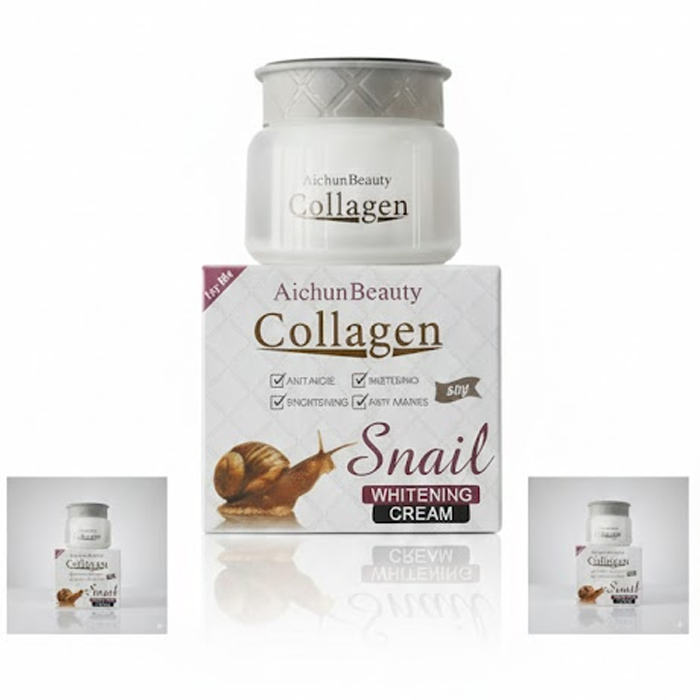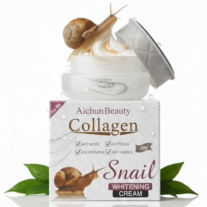 The Aichun Beauty Collagen Snail Whitening Cream is an advanced skin-repairing formula that combines the power of Snail Secretion Filtrate with Hydrolyzed Collagen. This multi-functional cream is designed to deeply hydrate, brighten, and rejuvenate the skin, offering a “glass skin” finish while targeting signs of aging and uneven skin tone.