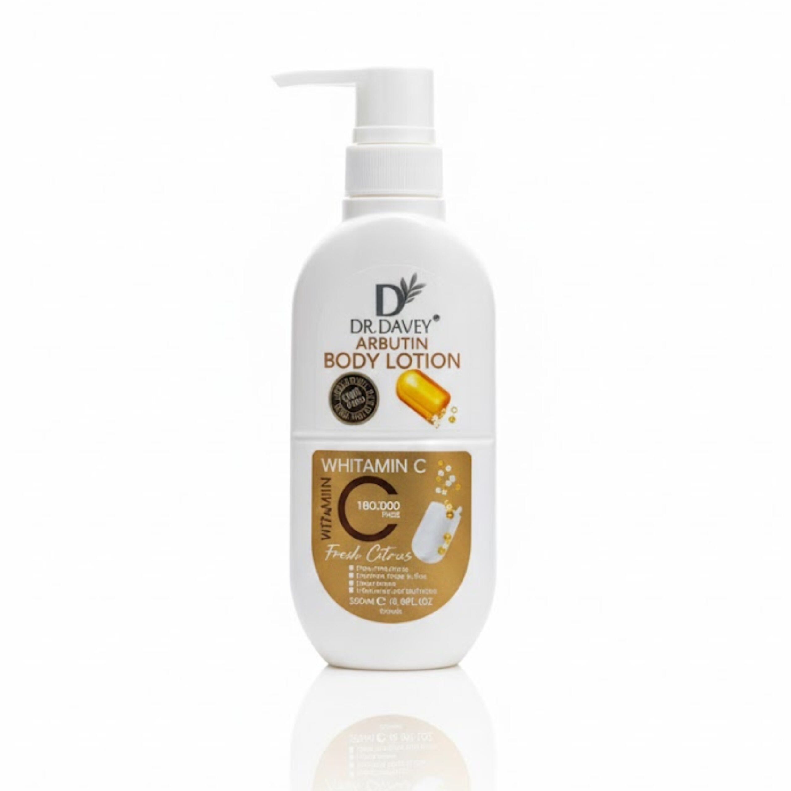 The Dr. Davey Arbutin Body Lotion with Vitamin C is a skin-brightening and moisturizing lotion designed to reduce dark spots and even out skin tone. It contains natural ingredients to help achieve a radiant and smooth complexion.