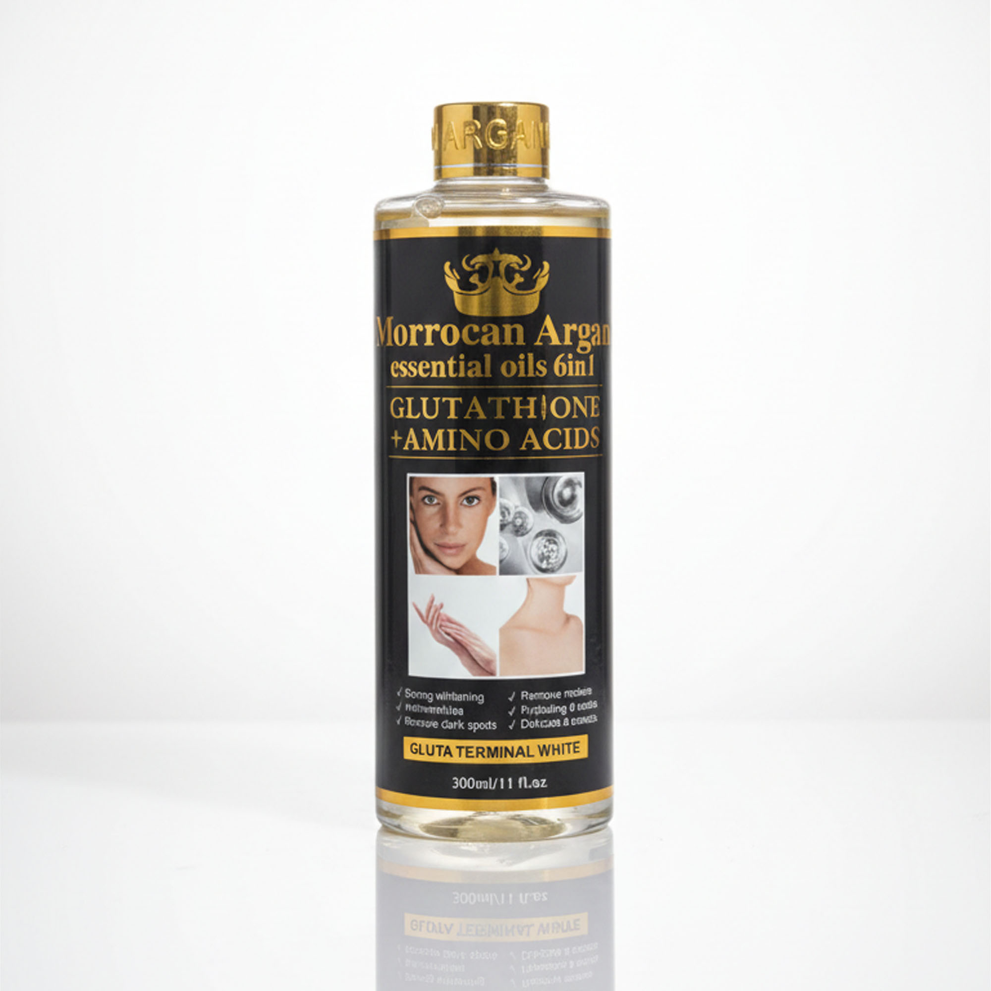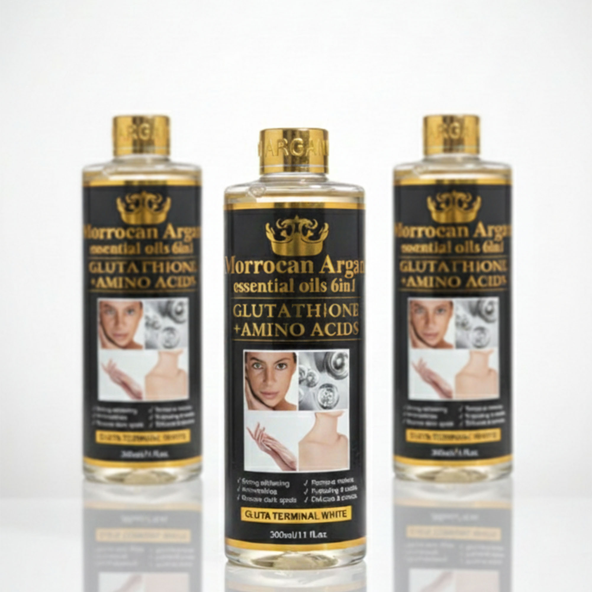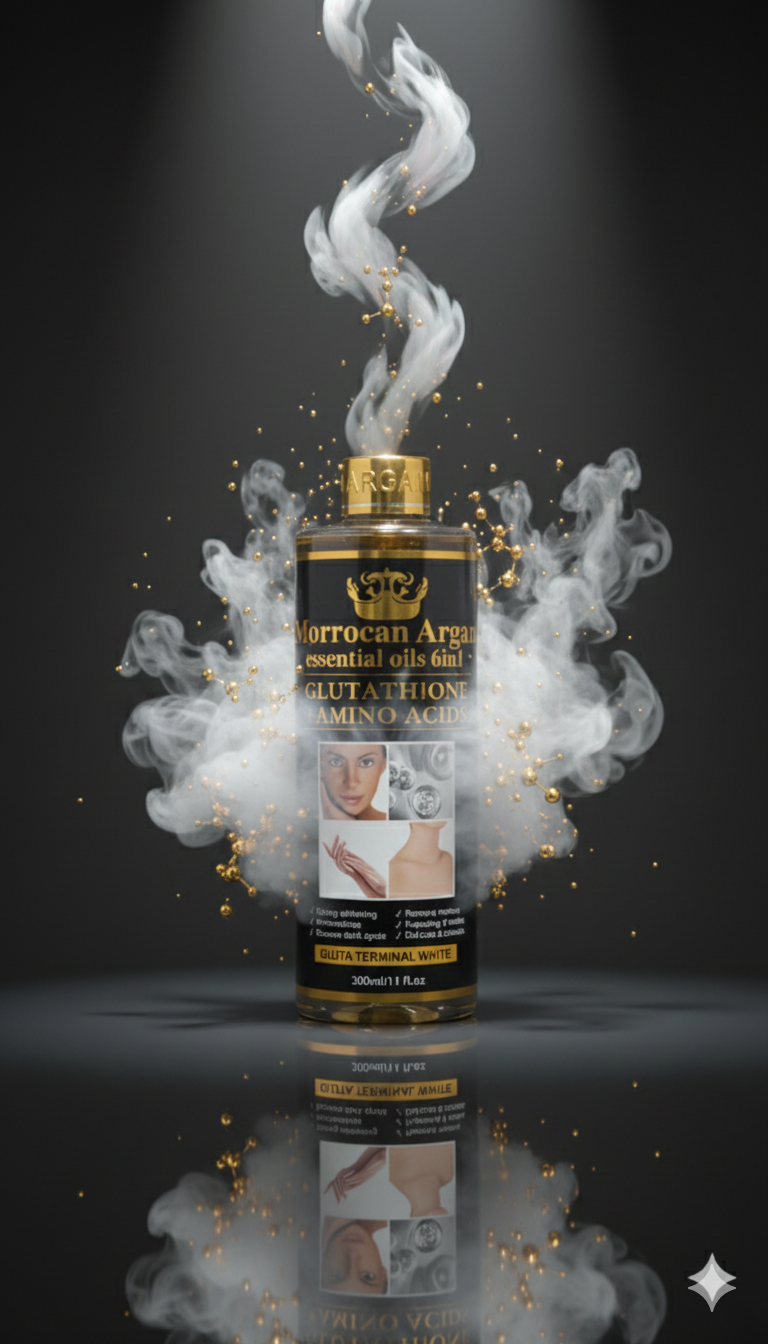 Morrocan Argan Essential Oils 6in1 Glutathione + Amino Acid strong whitening oil is designed to enhance skin brightness and address hyperpigmentation.