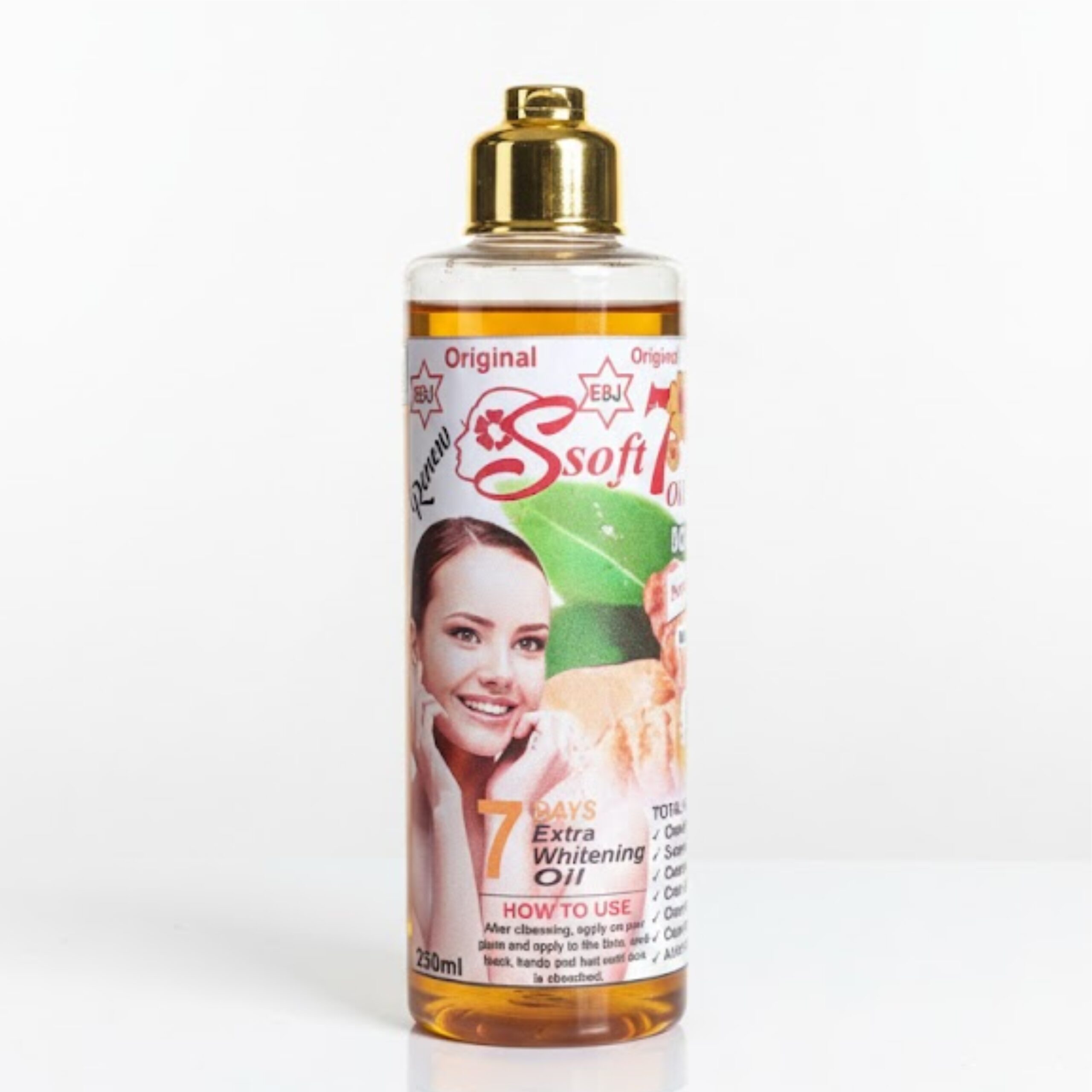 S’soft Original Renew 7 Days Extra Whitening Oil, also commonly known as Soft 7 Turmeric Oil. This oil is designed for both face and body application to help improve skin tone and address hyperpigmentation.
