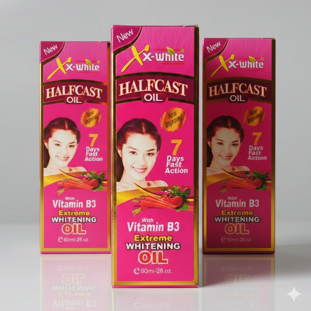 XX-White Halfcast Oil, a potent skin-enhancing body treatment designed for intensive brightening and nourishment.